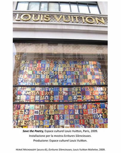 2009, the great work of art “Save the Poetry” exposed in the windows of the Espace culturel Louis Vuitton in Paris;