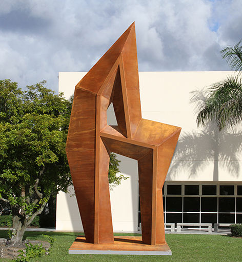 John’s most recent work is a series of monumental sculptures titled Passages, which are made out of steel and finished with vibrant colorful patinas, Passages represents the entrance to a different place that suggest change. Just by making a decision and taking the steps to get to the other side, we can change our lives, and John tries to make this statement in a dramatic way by dividing the road in two and placing a doorway in the middle. We need to think, to reflect in which way to go, and then make the decision and walk the way, but there is a point where our decisions to go in certain directions get more certain and more definitive, like a momentum in our lives that changes everything, at that point we pass an invisible door to our goals. These pieces represent these doors that, although invisible, are powerful and unique to each individual. The tough, rough, strong characteristics of the pieces made out of steel, insinuate the dimensions of the powerful moment in which we make those decisions, and cross the invisible doors with our intentions and acts to get to the other side.